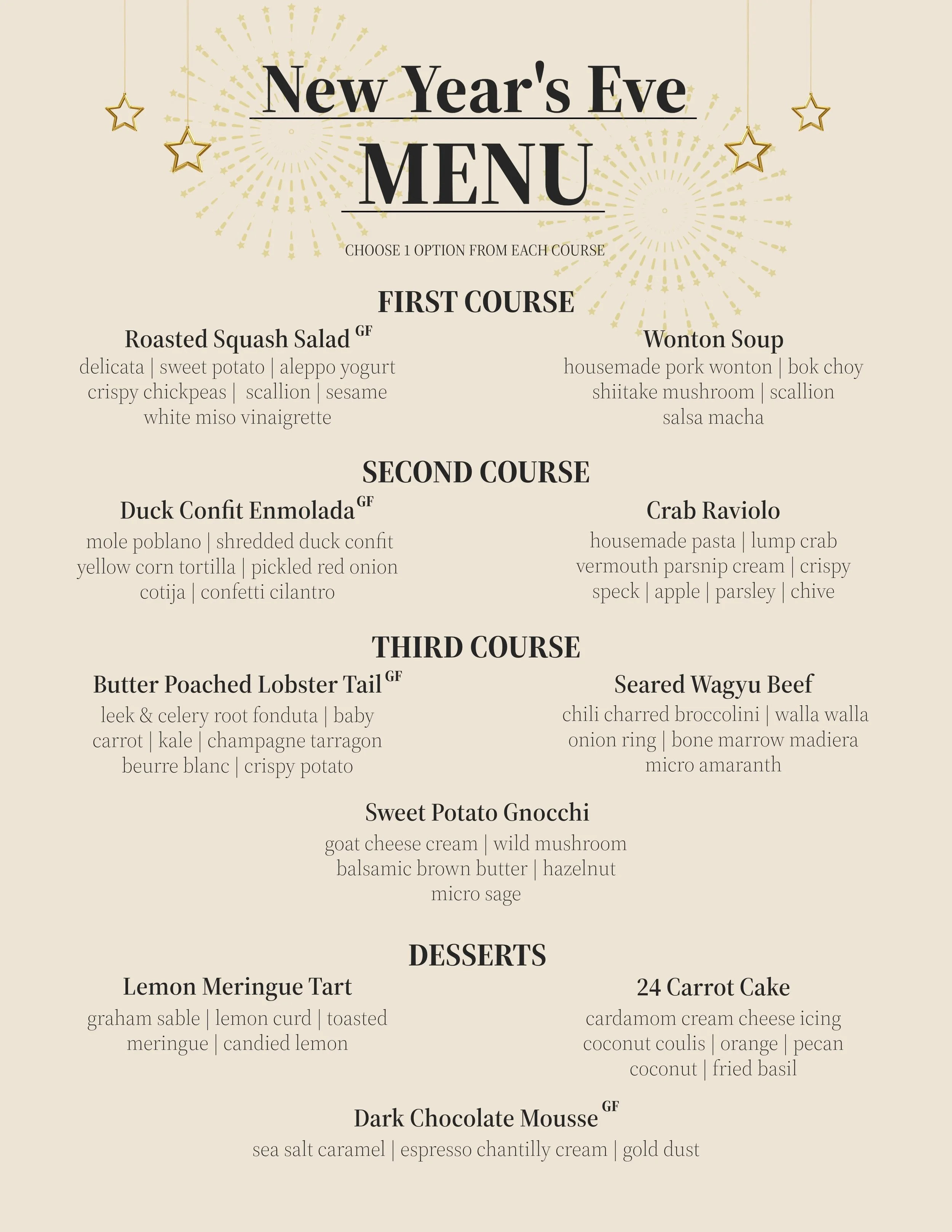 🍽 4-Course Pre Fixe Menu (beverages not included) - exclusive to New Year’s eve